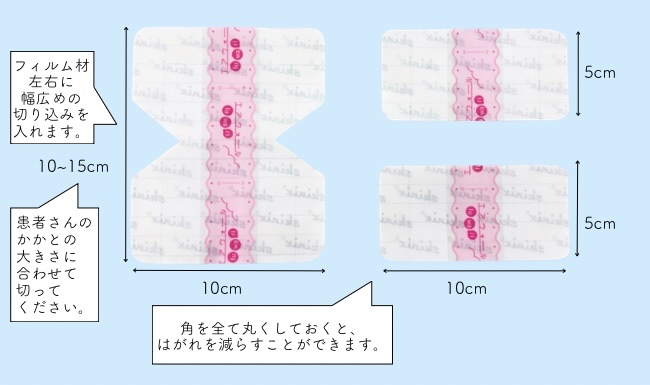 かかとは褥瘡(床ずれ)になりやすい部位で、フィルム材を貼る機会も多いと思います。