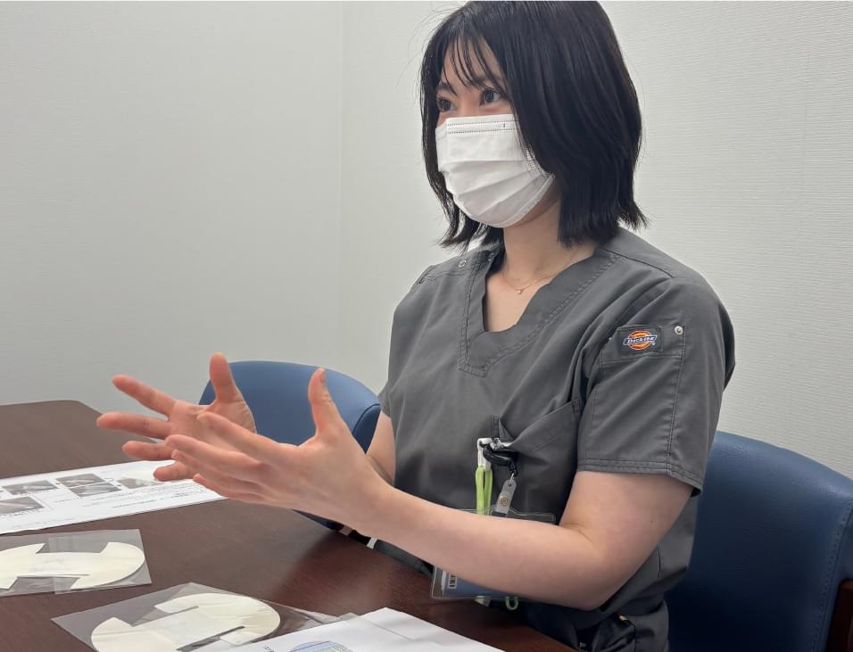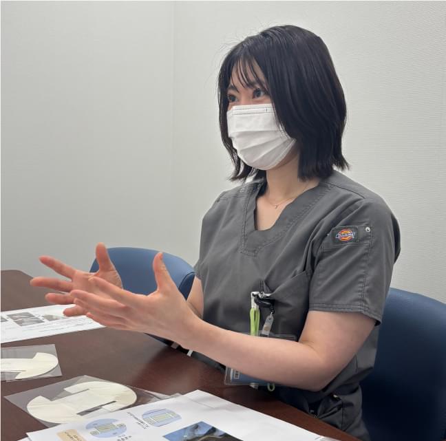 後は、この良さを色んな人に知ってもらいたい。伝わらないことが嫌なんですよ。ただ単にフィルム素材を使っているから良いんじゃないんですっていうところ。伸縮性の良さが皮膚トラブル(のリスク低減)にどう結び付くか、というのを何とかして可視化して欲しいと思っています。
