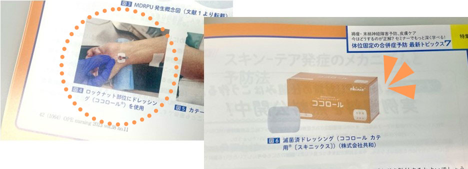『オペナーシング』2023年11月号「体位固定の合併症予防」で、手術中に発生するカテーテルのロックナット部分のMDRPU対策として、「ココロール カテ用」が掲載されました。