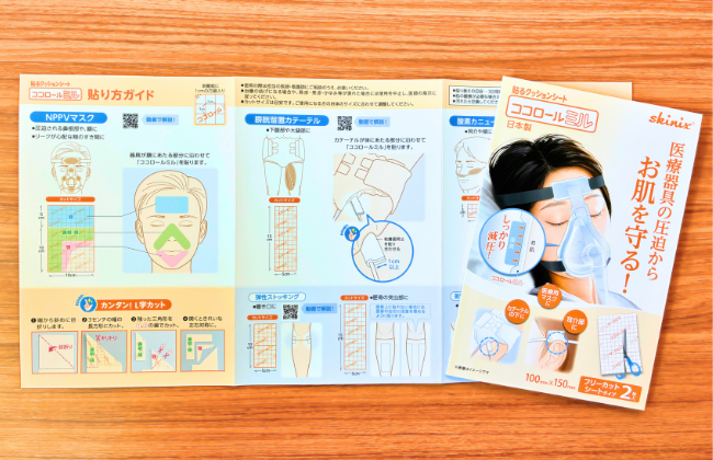 さらに、NPPVマスクをはじめとした各医療器具用の貼り方ガイド付きで、在宅の利用者さんとそのご家族にも、簡単にMDRPU対策の方法を理解、実践していただけます。