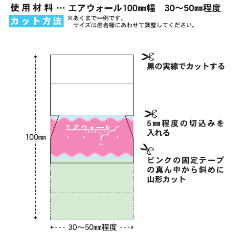 フィルムドレッシングを貼る前に、まず下図のようにカットしましょう。