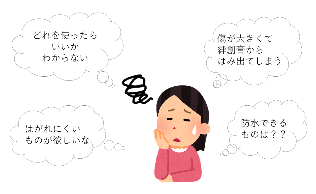 このような場合に、フィルムタイプの大型絆創膏の使用を検討してみてはいかがですか。