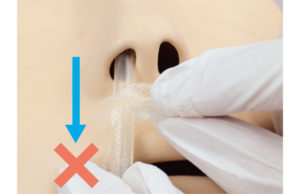 チューブの接触・圧迫は潰瘍の原因になるので、鼻翼から離して固定しましょう。