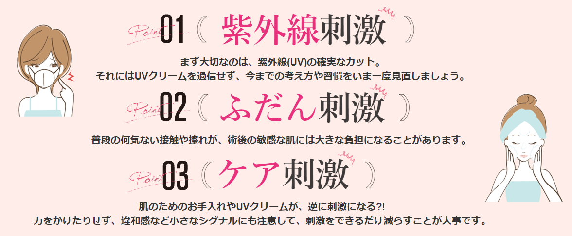 アフターケアで避けたい3つの刺激【紫外線刺激】【ふだん刺激】【ケア刺激】