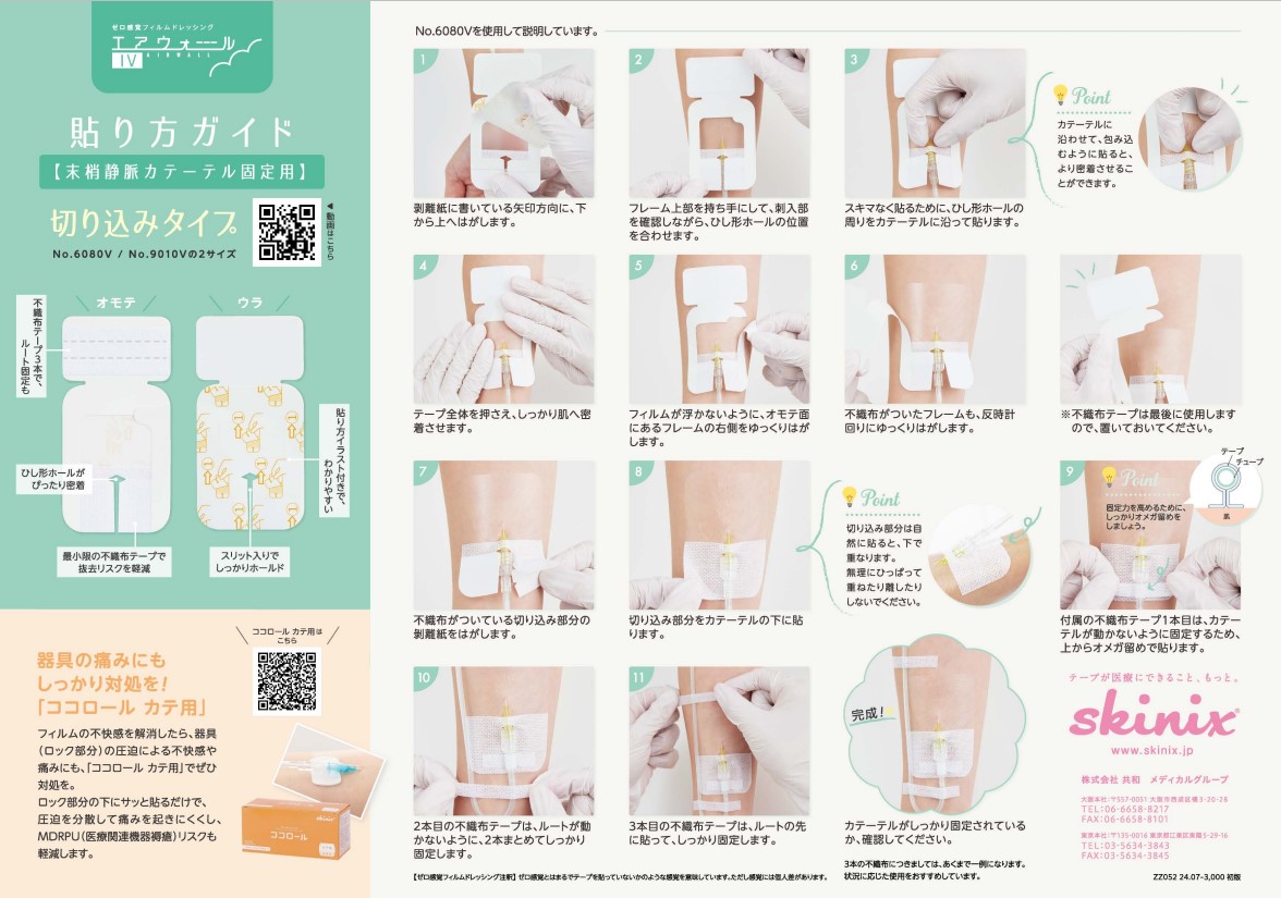 今回は、末梢静脈カテーテルの固定に、エアウォールIV〈新形状〉切り込みタイプを使用する時の詳しい貼り方を紹介します。