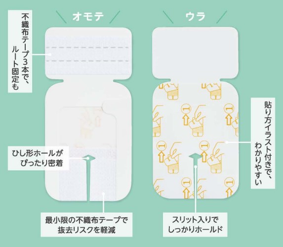 貼る手順はもちろん、カテーテルに合わせてうまく密着させて貼るためのコツも説明します。