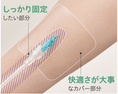 不織布テープが貼られていることで、逆に不快感を生じてしまい、患者さんが引っかくなどの自己抜去につながっている恐れもあります。