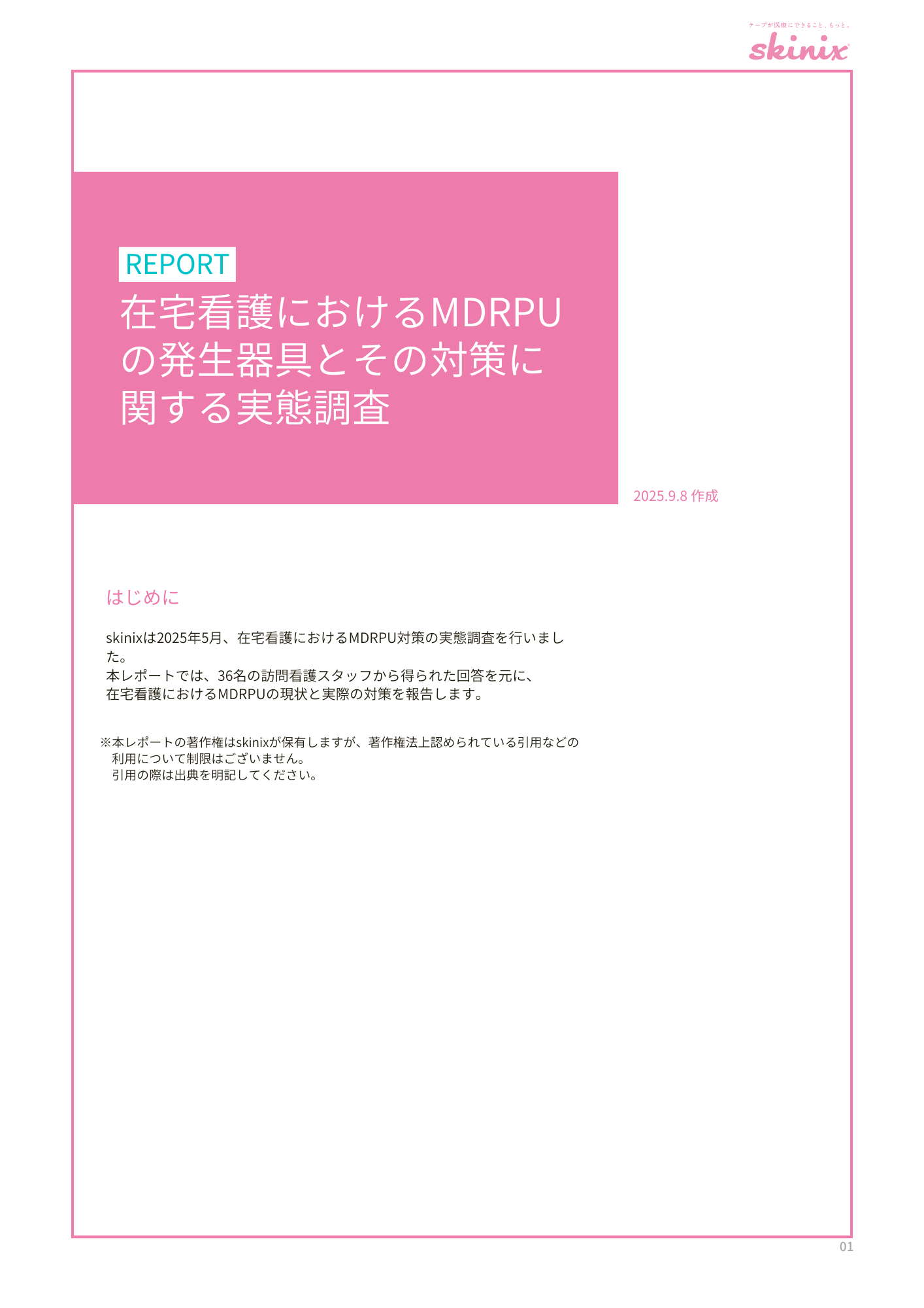 skinixは2025年5月、在宅看護におけるMDRPU対策の実態調査を行い、36名の訪問看護スタッフから得られた内容を調査レポートにまとめました。