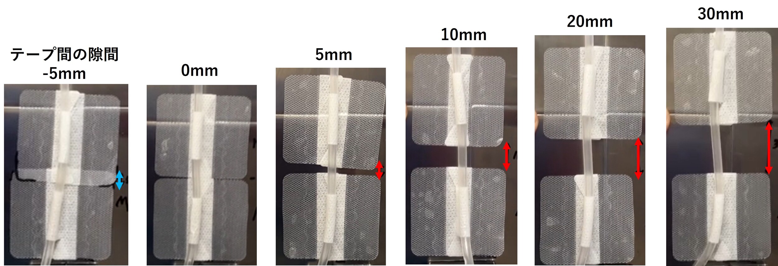 一方で、2枚貼りのテープ同士の距離を近づけても離しても、固定力は大きく変わらない結果となりました。