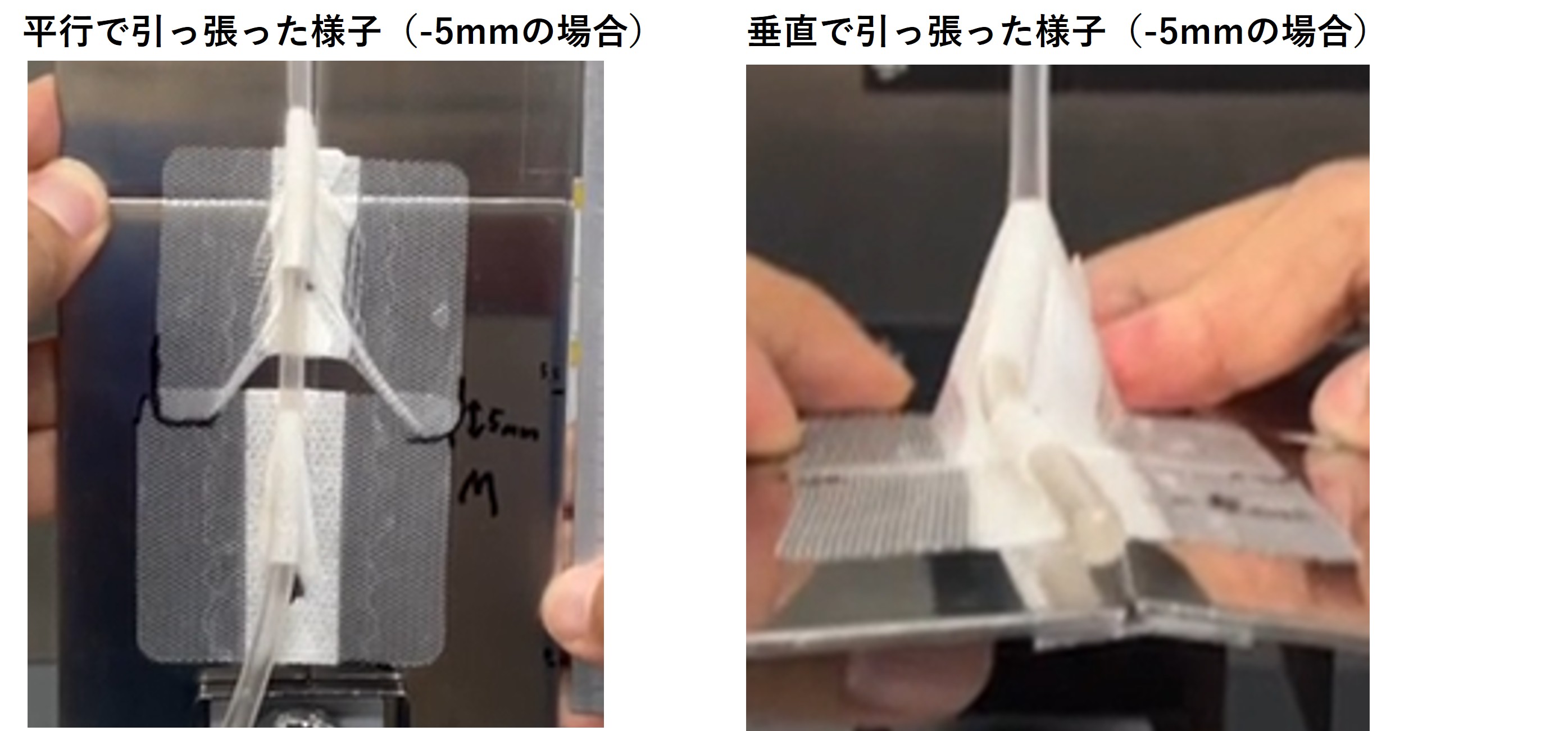 これは、垂直方向では引っ張る力が主に1枚目のテープにしか集中せず、2枚目のテープに十分な力が伝わらないためだと考えられます。