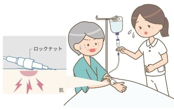 しかし、認知症等で痛みや不快感を自覚し訴えることが難しい患者さんの場合は、自分でその原因を取り除こうとして刺入部やルートに自然と手が行ってしまうケースも考えられるのではないでしょうか。