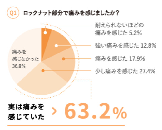 実際に、医療機関にて3日間以上血管留置カテーテルを継続した経験のある20歳以上の方に対してアンケートを取ったところ、全体の約6割が「ロックナット部分で痛みを感じた」という回答がありました。