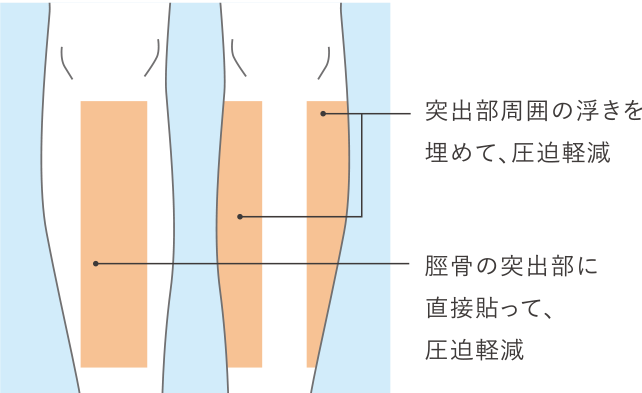 脛骨の突出している程度にあわせて、適切な貼り方を選択してください。