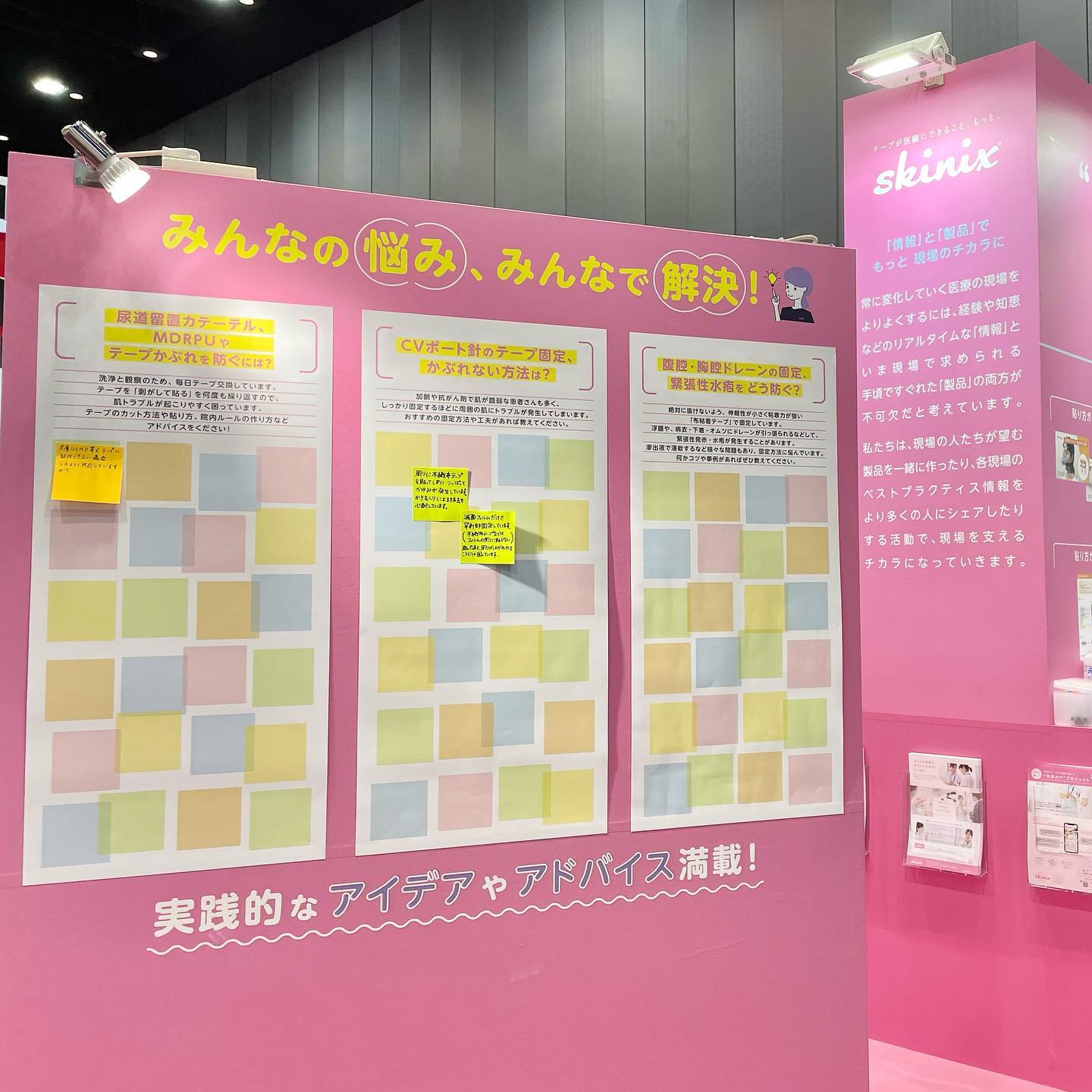 看護師のみなさまから事前に寄せられた肌やテープにまつわるお悩みや気になることに対して、来場された方・SNSをご覧になった方からの「自施設での実施例」や「アドバイス」、「類似症例」、「参考情報」などの情報をブースとSNSで共有!