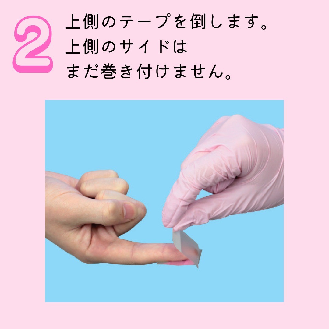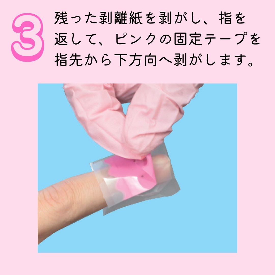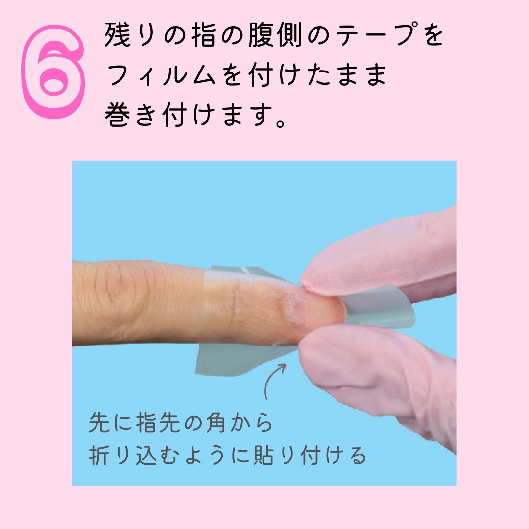 指先にフィルムドレッシングを貼るときは、ちょっとしたコツを押さえておくことで、うまく貼ることができます。
