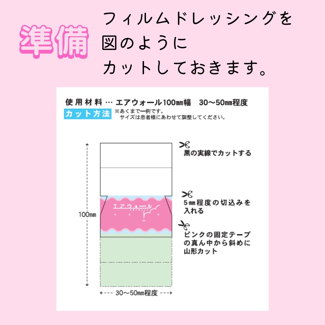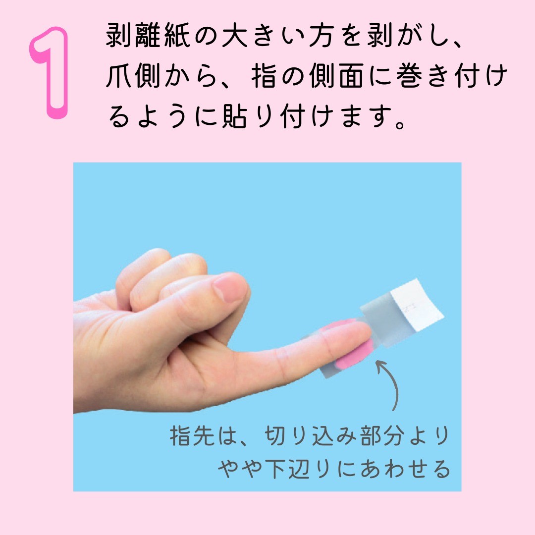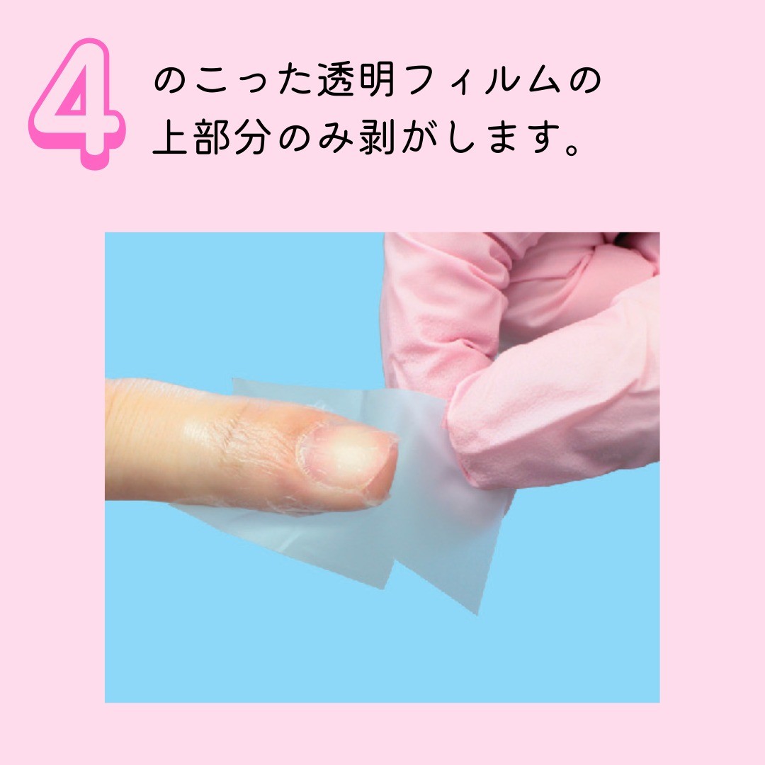 指先にフィルムドレッシングを貼るときは、ちょっとしたコツを押さえておくことで、うまく貼ることができます。