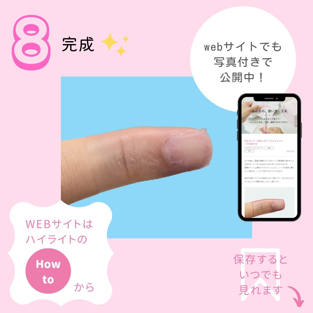 指先を怪我したときの絆創膏の防水や、あかぎれになりそうなところの保護には、医療用の極薄フィルムテープ「フィルムドレッシング」を貼るのがおすすめ✨