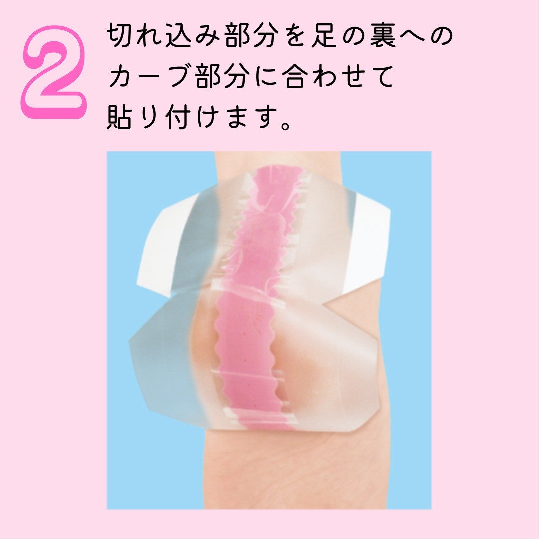 丸いフォルムの「かかと」は、貼るときにシワや隙間なくきれいに密着させて貼るのがポイント。