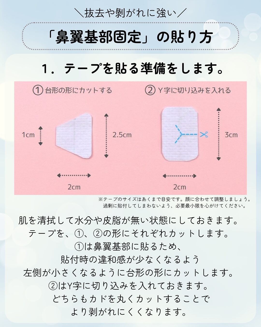 今回は、このような問題を解決するための固定方法の一例【鼻翼基部固定(びよくきぶこてい】をご紹介します✨
