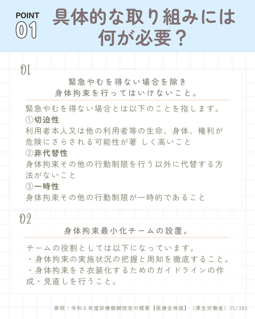 今回は、2025年6月から本格的に始まった診療報酬改定「身体拘束最小化の取り組み」のポイントをご紹介します☺️