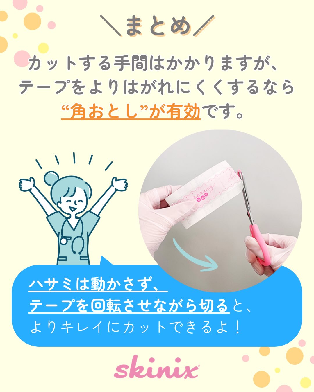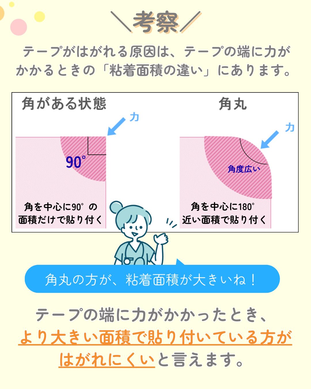 角を少しカットするだけで、テープがはがれにくくなることが判明✨